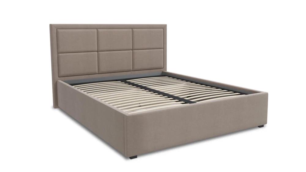 Интерьерная кровать из серии Квадро с подъемным механизмом и ортопедическим основанием, а также настилом из ЛДСП для бельевого отсека. Пластиковая опора 2,80 см.