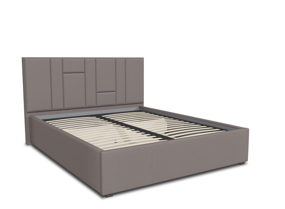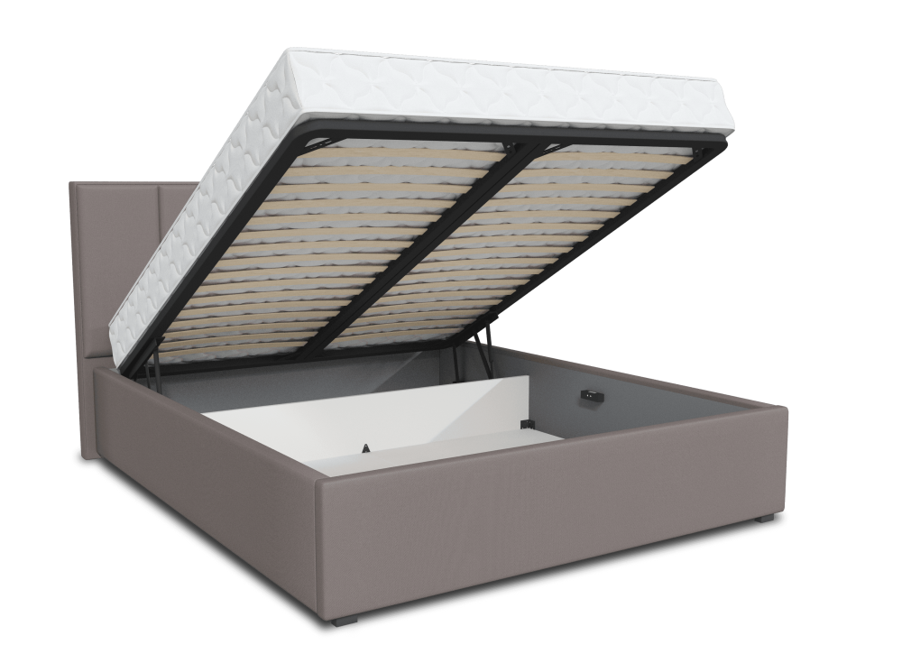 Интерьерная кровать из серии Монтана с подъемным механизмом и ортопедическим основанием, а также настилом из ЛДСП для бельевого отсека. Пластиковая опора 2,80 см.