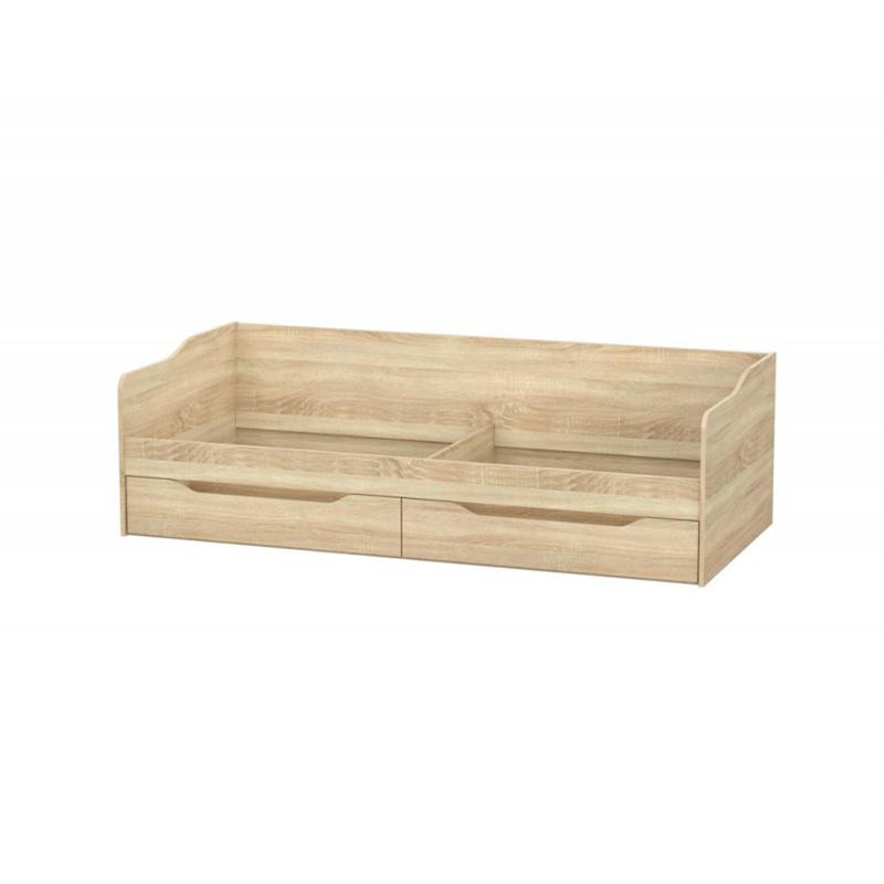Кровать односпальная КР-1. Корпус и фасад выполнен из ЛДСП. Модель оснащена бортиком, который защитит от ударов и сквозняков. Есть ящики для белья.