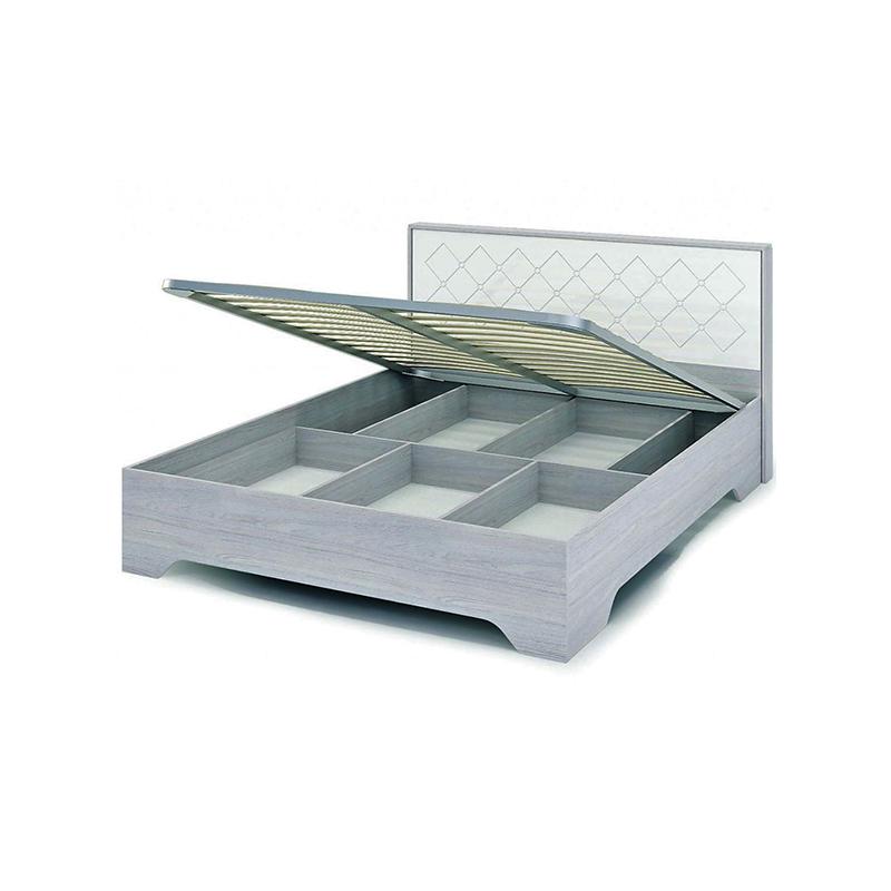 Кровать Сальма 1400 мм. Материал каркаса кровати выполнен из ЛДСП. Высокое изголовье кровати с глянцевым фасадом и фрезеровкой из МДФ. Модель оснащена ортопедическим основанием и подъемным механизмом.