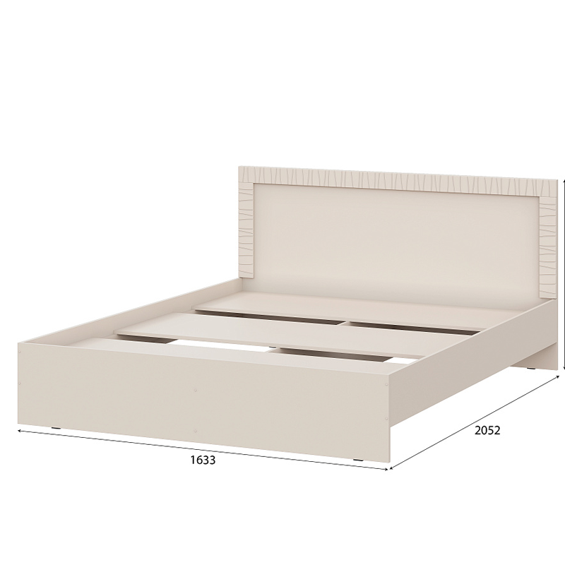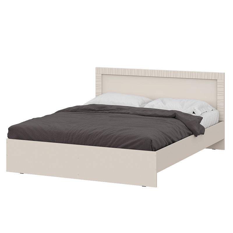 Кровать "Калипсо" от SV-мебель выполнена в современном стиле, отличается лаконичным дизайном и нежными оттенками. Кровать имеет изголовье, с декоративной отделкой по периметру, также выполнено в светлом бежевом оттенке, что придает ей элегантный и уютный вид.