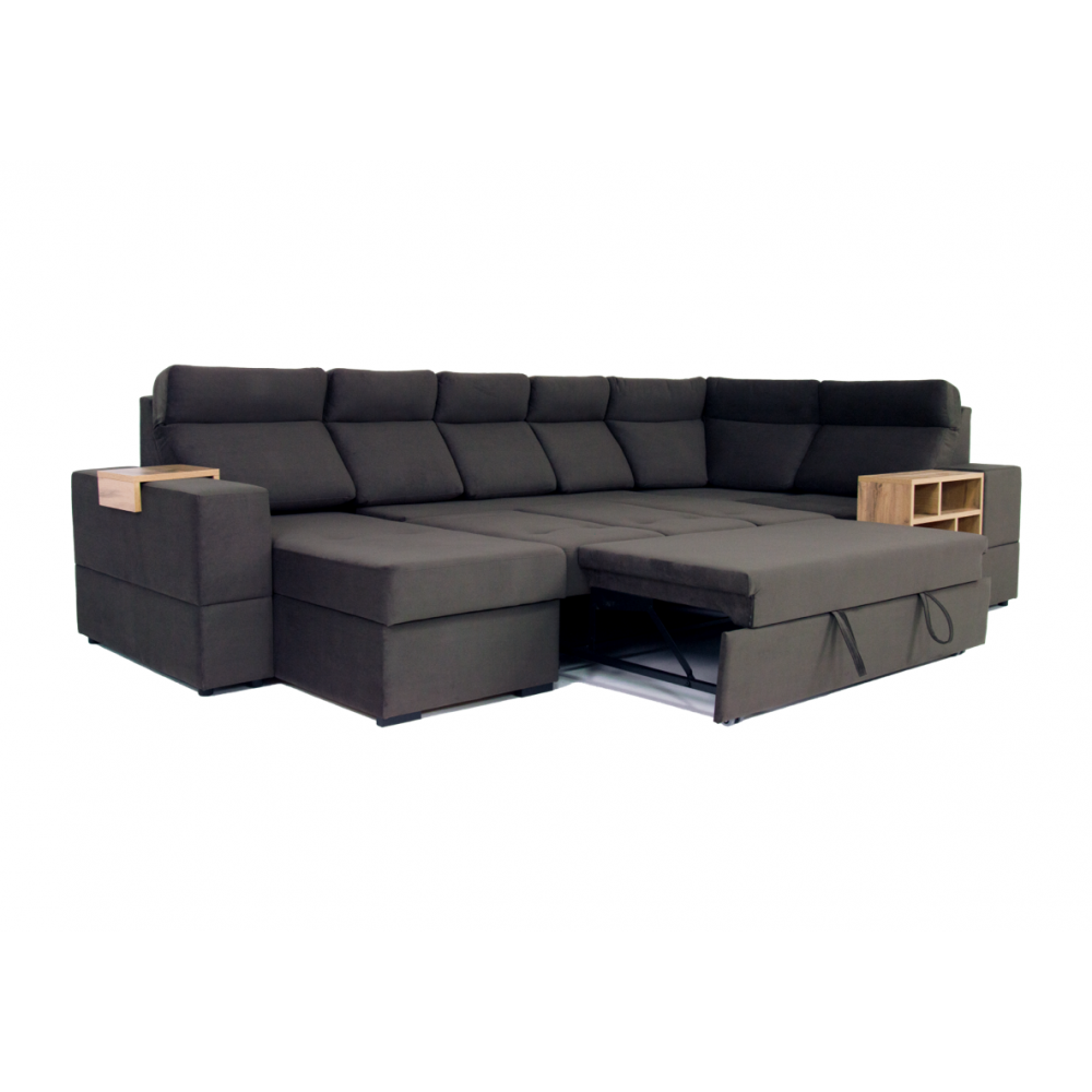 Дизайн серии модульных диванов «Бостон» - может похвастаться изысканными подголовниками приспинных подушек, изогнутая форма гармонирует и продолжает общий силуэт модели, поддерживая голову для комфортного сидения. Функциональные подлокотники взаимозаменяемый, при желании возможно поменять местами прикладной столик и ящики.