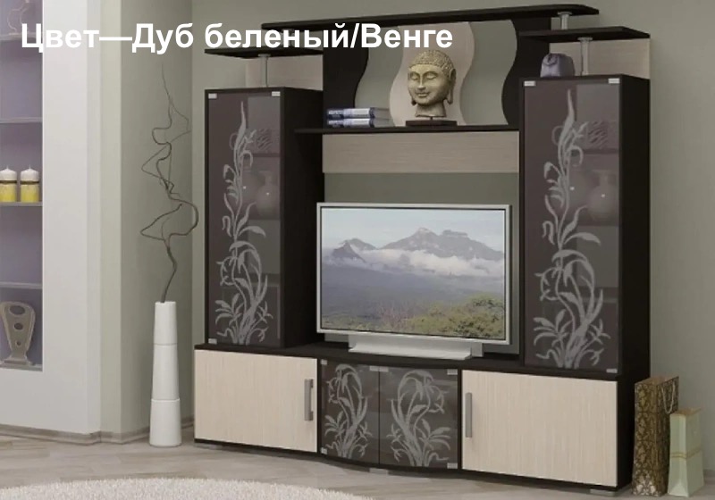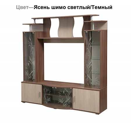 Стенка Виста в гостиную. Модель оснащена секциями со стеклянными фасадами, полками. В центре ниша под телевизор Ш*В: 1098*904 мм. Стенку можно дополнить другими модулями Виста и собрать полноценную гостиную.