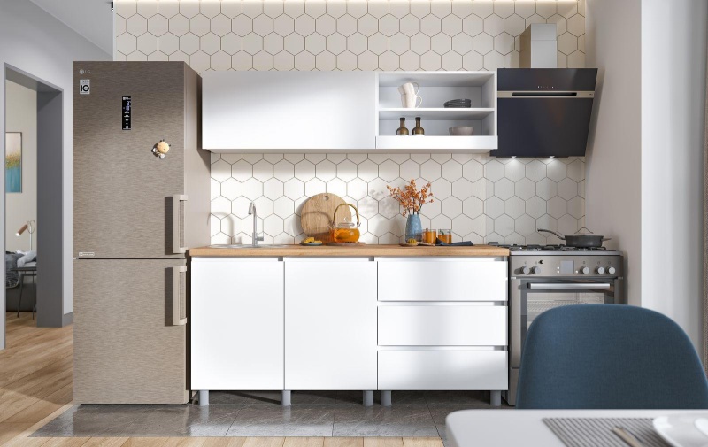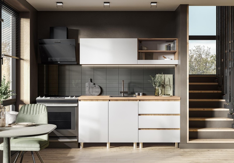 Кухня "Хелен" 1,7м от СТЕНДМЕБЕЛЬ – это стильное решение для современной кухни, длиной 1.7 метра. Расцветка фасадов и древесный корпус создают выразительный контраст, а оптимальный набор модулей обеспечивает удобное хранение и готовку.