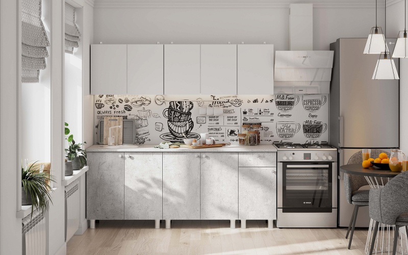 Готовая кухня КГ-1, шириной 2000 мм. Корпус и фасад кухни сделан из ЛДСП. Столешница: Цельная 26 мм. Внутри шкафов просторные отделения для посуды и кухонной утвари. Выдвижной ящик на роликовых направляющих. Стандартные петли без доводчиков. Верхние модули крепятся к стене при помощи угловых навесов. Крепеж в стену покупатель приобретает самостоятельно исходя из материала стен.