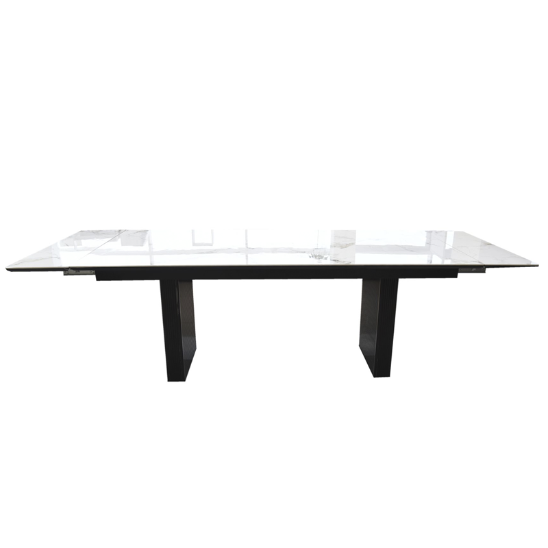 Стол Джорджио Керамика 2000 Ваша Мебель (Керамика ДГ-3 мрамор белый, МДФ черный, каркас муар черный (2000/2600*900*750)).