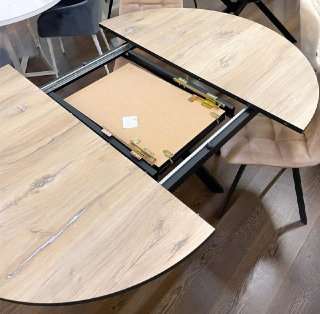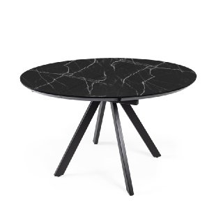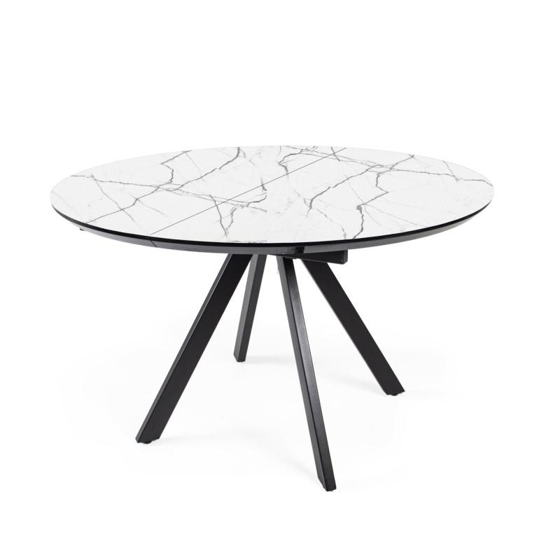 Стол Бахус Пластик 1200 Ваша Мебель (пластик компакт 3027 мрамор белый, мдф черный, основание муар черный (d=1200(1600)))
