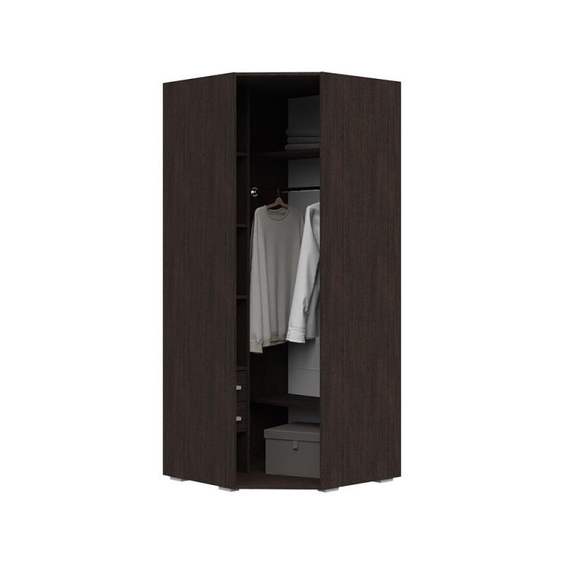 Угловой шкаф Вегас. Корпус шкафа выполнен из ЛДСП, фасад МДФ. Угловая модель оснащена полками, штангой для одежды на плечиках. Фасад шкафа декорирован геометрическим рисунком.