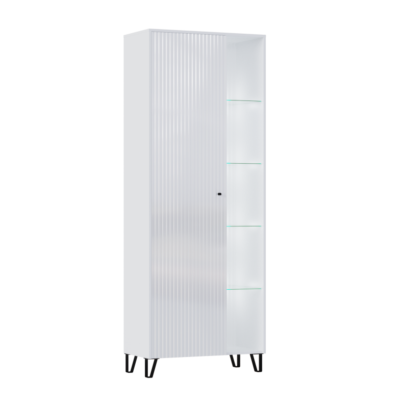 Гостиная Оливия - это серия мебели в стиле Лофт. Напольные элементы установлены на черные металлические опоры. Материал корпуса ЛДСП. Материал фасада МДФ с рифленой фактурой. На стекополках можно расположить предметы декора.