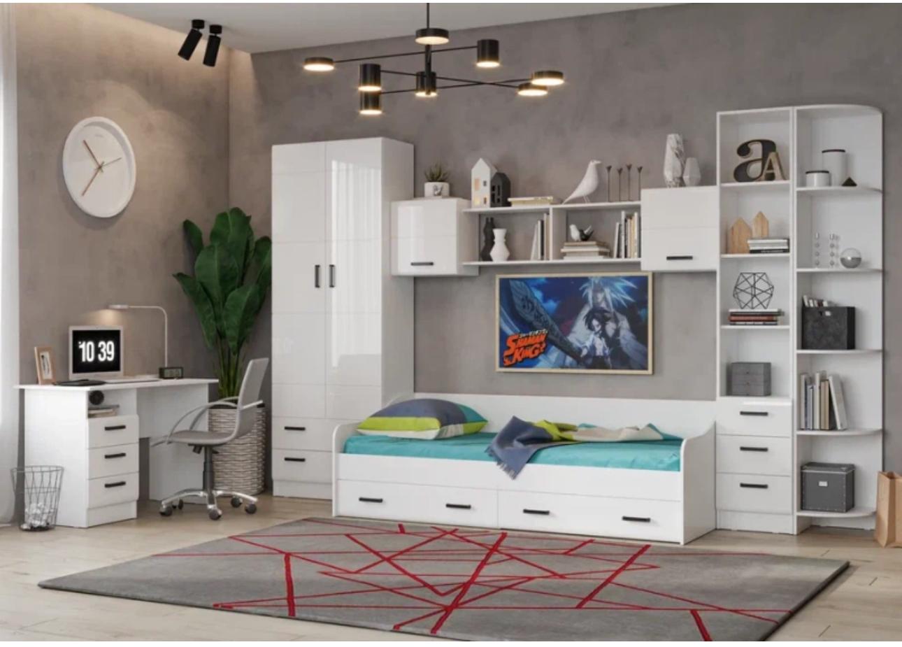 Кровать для подростка из модульной серии Вега New. Корпус выполнен из ЛДСП, фасад из МДФ. Модель оснащена бортиком, который защитит ребенка от ударов и сквозняков. Есть ящик для белья.
